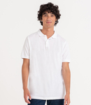 100% organic cotton. Fashion fit. Narrow knitted collar and cuffs. Taped neck. Two button placket. Side seams. Twin needle sleeves and hem. Unbranded size label.
